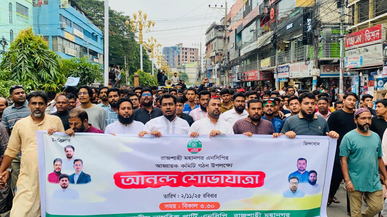 ষ্টাফ রিপোর্টার : রাজশাহী মহানগরে জাতীয় নাগরিক পার্টি (এন সি পি)-এর নবগঠিত আহবায়ক কমিটি গঠন উপলক্ষে এক আনন্দ মিছিল অনুষ্ঠিত…